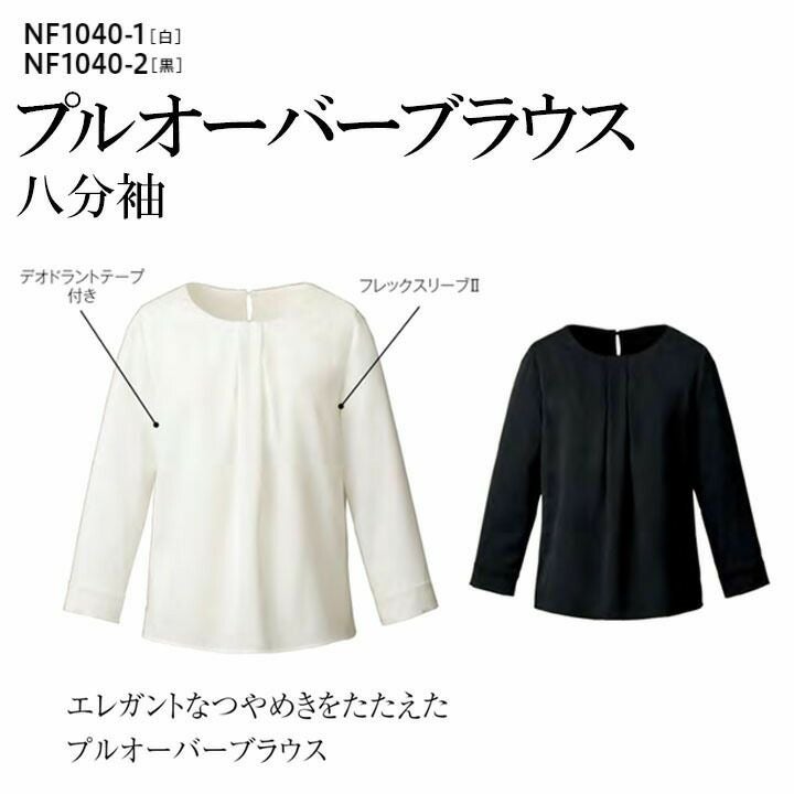 プルオーバーブラウス 八分袖 事務服 NF1040-1 1040-2 ストレッチ 吸汗速乾 防透 紫外線カット レディース 女性用 オールシーズン 制服 ユニフォーム オフィス アルファピア チクマ