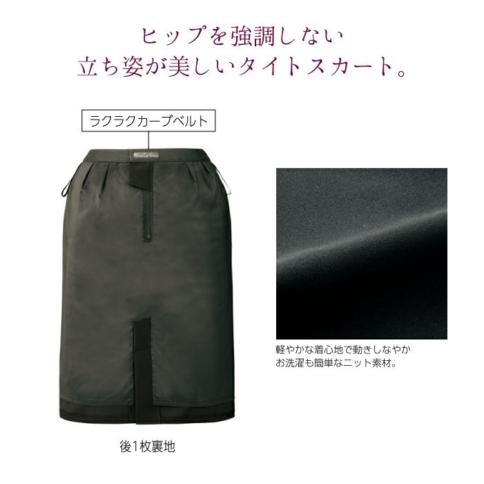 他の画像を見る ヒップを強調しない、立ち姿が美しいタイトスカート。ストレスフリーのカーブベルトを採用。ストレッチ裏地で、強度と着心地をさらにアップ。防シワ ホームクリーニング 事務服 スカート AR3855-2 タイトスカート オールシーズン レディース【アルファピア/チクマ】女性用 制服 ユニフォーム 本体価格 ¥ 12,760 税込 カートに入れる お気に入りに登録する