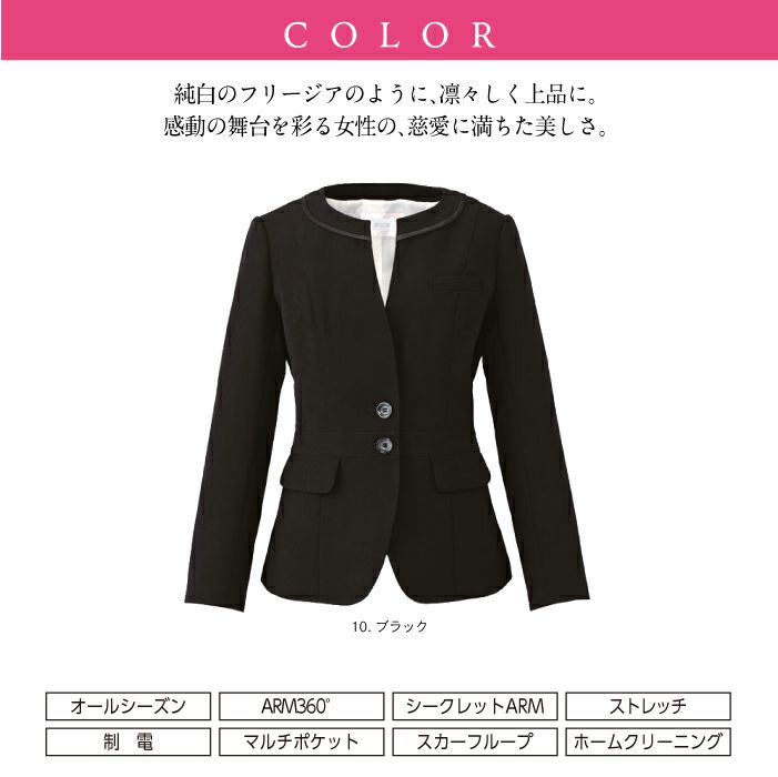 他の画像を見る 一日中美しく、動きやすく。上品な色香が漂うジャケット。静電気を防ぐ制電加工でお客様と接するときも安心。ホームクリーニング カーシーカシマ ジャケット EAJ-513【ENJOY】 事務服 レディース 女性用 制服 ユニフォーム 本体価格 ¥ 17,160 税込 カートに入れる お気に入りに登録する
