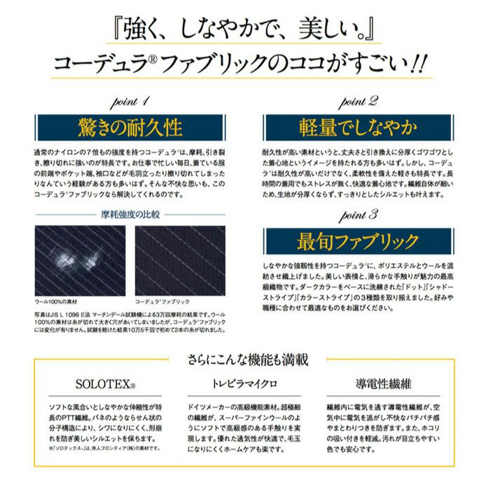 他の画像を見る 「強く、しなやかで、美しい。」世界初!レディスオフィスウェアにコーデュラファブリック登場。ウールのしなやかで美しい質感、保温、吸放湿。ストレッチ ホームクリーニング ボンマックス タイトスカート 【秋冬】AS2297 女性用 制服 事務服 ユニフォーム 本体価格 ¥ 10,043 税込 カートに入れる お気に入りに登録する