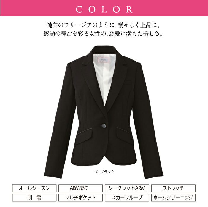他の画像を見る 一日中美しく、動きやすく。凛々しく上品に。こだわりのブラックスーツ。ストレッチ 制電 カーシーカシマ ジャケット EAJ-511【ENJOY】 事務服 レディース 【19号】女性用 制服 ユニフォーム 本体価格 ¥ 25,740 税込 カートに入れる お気に入りに登録する