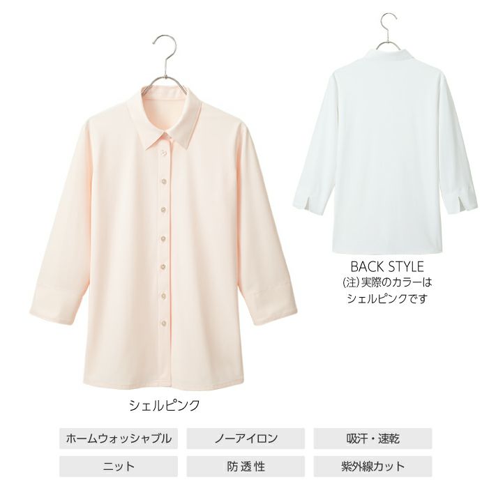 他の画像を見る 動きやすさ、機能性、安心感まで叶う新ニットシャツ。乾きが速く、ノーアイロンでOK!高通気性でムレ感やべたつきナシ。吸汗 速乾 防透 UVカット ホームクリーニング 事務服 ブラウス 七分袖 AR1529-4 シェルピンク オールシーズン レディース【アルファピア/チクマ】女性用 制服 ユニフォーム 本体価格 ¥ 5,060 税込 カートに入れる お気に入りに登録する