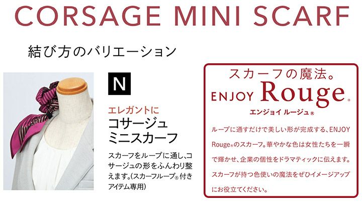 他の画像を見る ループに通すだけで美しい形が完成するスカーフ。 コサージュミニスカーフ 事務服 オフィスウェア カーシー ENJOY EAZ827 オールシーズン レディース 女性用 制服 ユニフォーム エンジョイ 本体価格 ¥ 4,466 税込 在庫切れ カートに入れる お気に入りに登録する