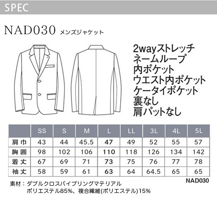 他の画像を見る 「働く」を洗練させる、先進のユニフォームを男性にも。 メンズジャケット 事務服 NAD030 NAD-030 ストレッチ オールシーズン 男性用 制服 ビジネス フォーマル オフィスウェア ユニフォーム エンジョイ カーシー ENJOY ノワール Noir 本体価格 ¥ 19,250 税込 在庫切れ カートに入れる お気に入りに登録する