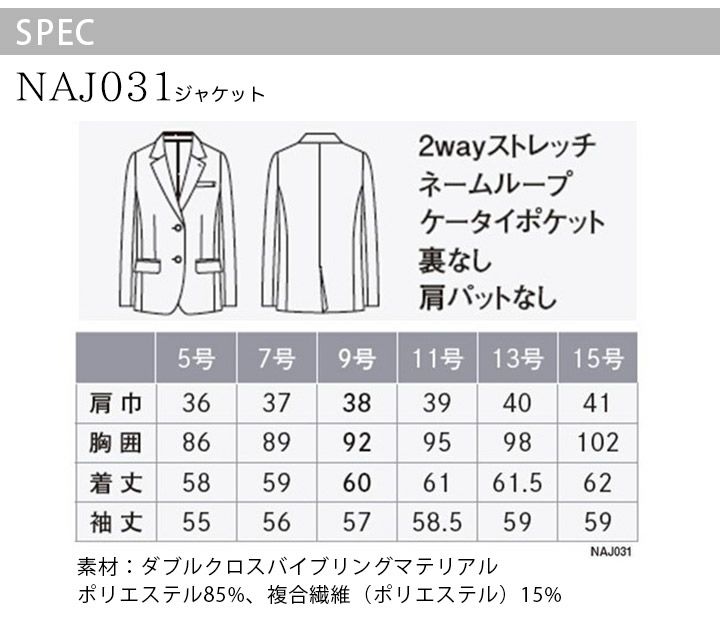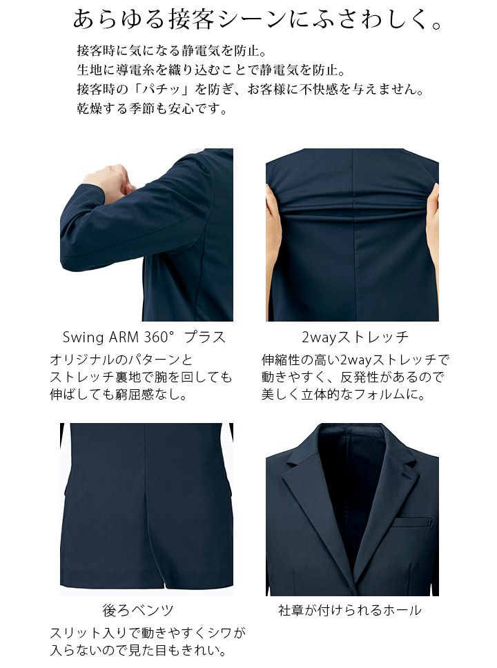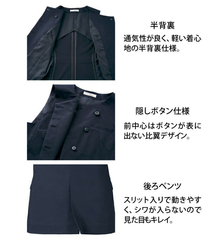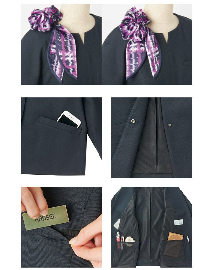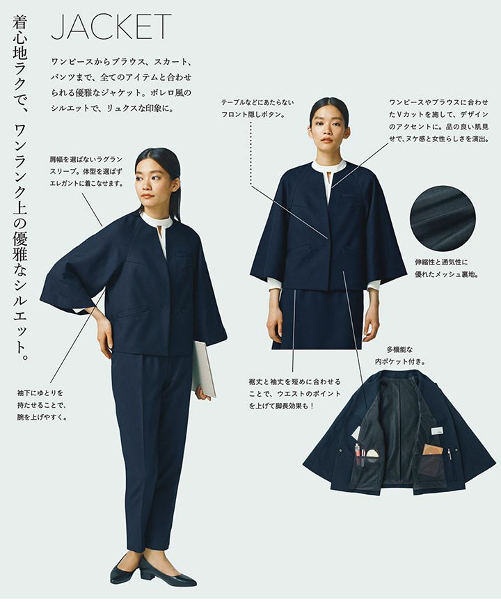 他の画像を見る 着心地ラクで、ワンランク上の優雅なシルエット。 ノーカラージャケット 事務服 NAJ025 NAJ-025 オールシーズン ストレッチ 吸汗 速乾 制菌 防臭 制電 レディース 女性用 制服 フォーマル オフィスウェア ユニフォーム エンジョイ カーシーカシマ ENJOY ノワール Noir 本体価格 ¥ 15,400 税込 在庫切れ カートに入れる お気に入りに登録する