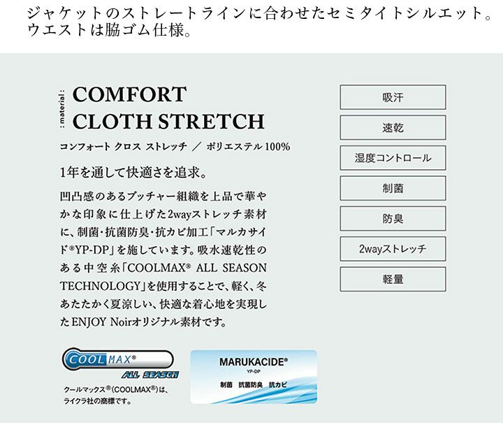 他の画像を見る ゆとりあるシルエットで動きやすく。ウエスト脇ゴム仕様のテーパードパンツ。 テーパードパンツ 事務服 NAL028 NAL-028 ズボン オールシーズン ストレッチ 吸汗 速乾 制菌 防臭 制電 レディース 女性用 制服 フォーマル ケアマネージャー オフィスウェア ユニフォーム エンジョイ カーシー ENJOY ノワール Noir 本体価格 ¥ 10,780 税込 在庫切れ カートに入れる お気に入りに登録する