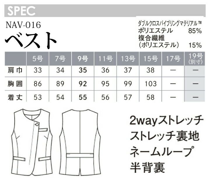 他の画像を見る 個性的なデザインの洗練ベスト。 事務服 ベスト NAV016 NAV-016 レディース 女性用 秋冬 年間 オールシーズン オフィスウェア 制服 静電気防止 ストレッチ 大容量ポケット ユニフォーム カーシーカシマ ノワール Noir ダブルクロスバイブリングマテリアルシリーズ 本体価格 ¥ 13,860 税込 在庫切れ カートに入れる お気に入りに登録する