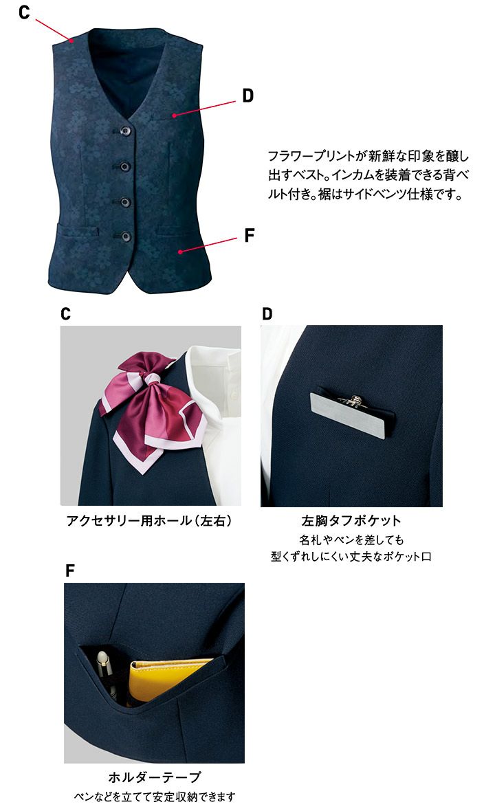 他の画像を見る 気になる汗のニオイをスッキリOFF! フラワープリントが新鮮なベスト。 ベスト 事務服 AR2006-1 レディース 女性用 ストレッチ 消臭 帯電防止 オールシーズン 制服 ユニフォーム オフィス アルファピア チクマ 本体価格 ¥ 14,500 税込 在庫切れ カートに入れる お気に入りに登録する