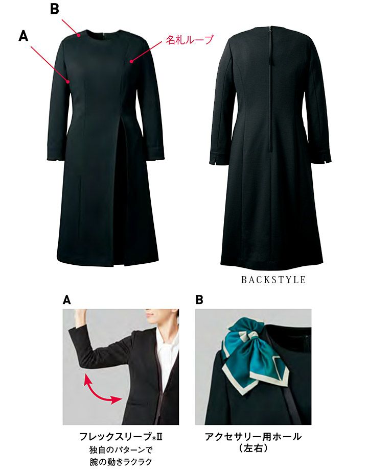 他の画像を見る タックを印象的に取り入れた、やわらかさのあるワンピース。ウールライクな表情で、汚れがつきにくい防汚加工。 ワンピース 九分袖 事務服 AR6003-3 AR6003-4 レディース 女性用 ストレッチ 防汚 帯電防止 制服 ユニフォーム オフィス アルファピア チクマ 本体価格 ¥ 36,000 税込 在庫切れ カートに入れる お気に入りに登録する