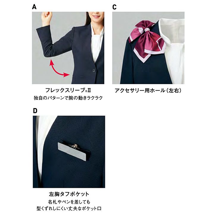 他の画像を見る 2wayストレッチで着心地抜群。オールシーズン着用可能。ホームクリーニングOK。 ジャケット 事務服 82065 生地厚4 年間 オールシーズン ポリ100% 女性用 レディース会社 企業 制服 オフィスウェア アンジョア en joie 本体価格 ¥ 18,502 税込 在庫切れ カートに入れる お気に入りに登録する