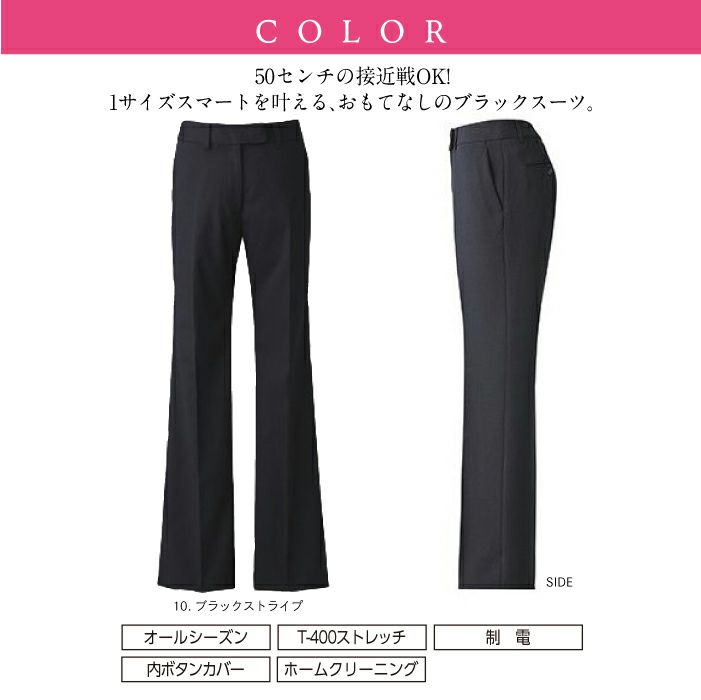 他の画像を見る スッキリメリハリの美しいフレアストレート。制電 ホームクリーニング ストレッチ カーシーカシマ フレアストレートパンツ EAL-522【ENJOY】 事務服 レディース 女性用 制服 ユニフォーム 本体価格 ¥ 12,430 税込 在庫切れ カートに入れる お気に入りに登録する