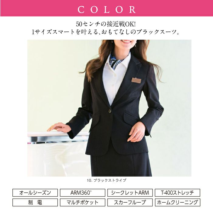 他の画像を見る 1サイズスマートを叶えるおもてなしブラックスーツ。制電 ホームクリーニング カーシーカシマ ロングジャケット EAJ-518【ENJOY】 事務服 レディース 女性用 制服 ユニフォーム 本体価格 ¥ 18,920 税込 在庫切れ カートに入れる お気に入りに登録する