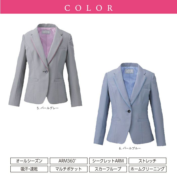 他の画像を見る 視覚のちらつきも抑えた、接する人にも優しい素材、シワの回復性にも優れています。吸汗 速乾 カーシーカシマ ジャケット EAJ-575【ENJOY】事務服 レディース 女性用 制服 ユニフォーム 本体価格 ¥ 19,250 税込 在庫切れ カートに入れる お気に入りに登録する