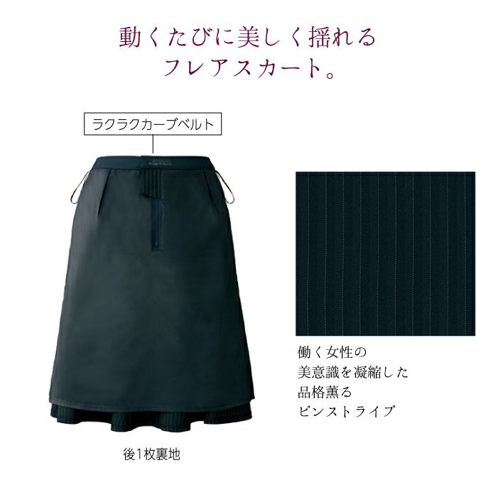他の画像を見る フェミニンで優美な印象をプラスする美しく揺れるフレアスカート。着心地は軽く、イージーケア性にも優れています。ストレッチ ホームクリーニング 事務服 スカート AR3863-1 フレアスカート オールシーズン レディース【アルファピア/チクマ】女性用 制服 ユニフォーム 本体価格 ¥ 12,760 税込 在庫切れ カートに入れる お気に入りに登録する
