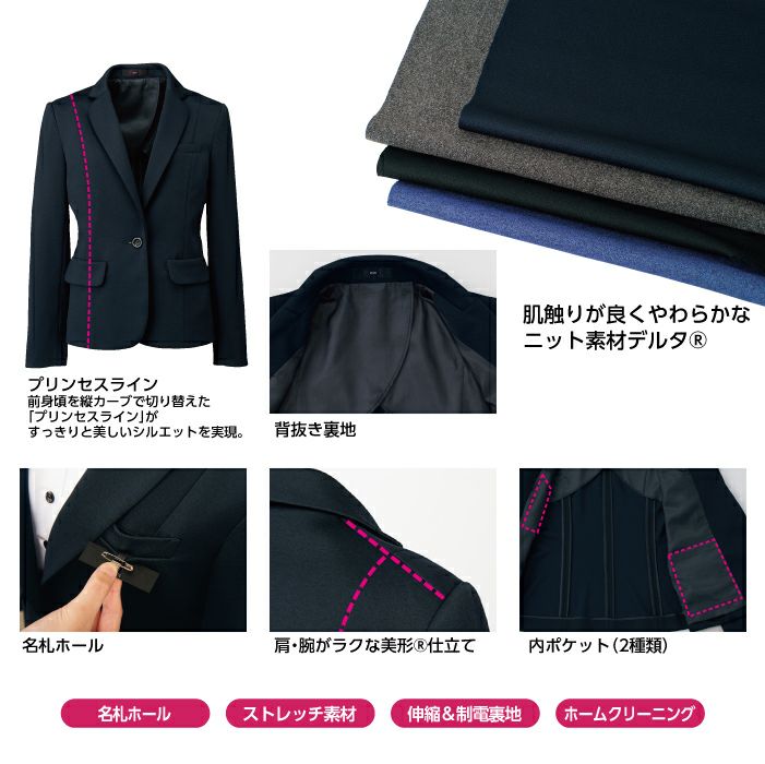他の画像を見る 女性らしく華やかなペタルカラーのジャケット。しなやかなタッチと適度なハリとコシが立体感のある美しいフォルムを実現!ストレッチ裏地 事務服 ジャケット YT4914-1 オールシーズン レディース【アルファピア/チクマ】女性用 制服 ユニフォーム 本体価格 ¥ 26,950 税込 在庫切れ カートに入れる お気に入りに登録する