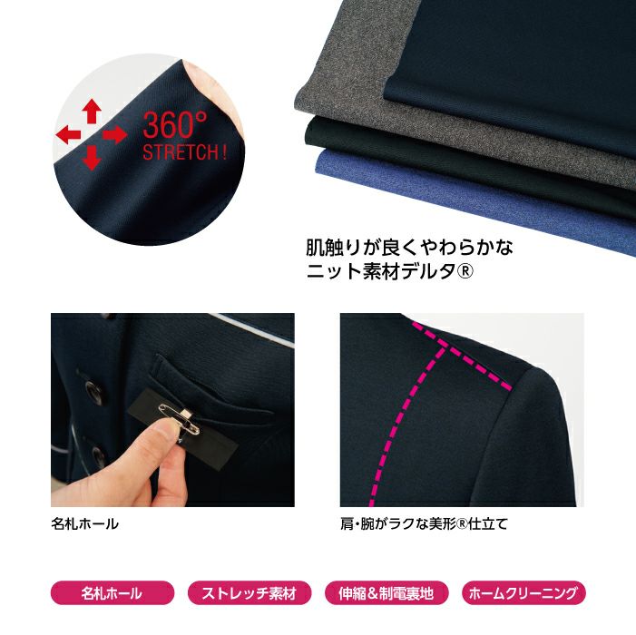 他の画像を見る 袖、後身頃をニット使いにし、着る人の動きにしなやかに寄り添うジャケット。速乾性が高く、イージーケア性にも優れています。ストレッチ裏地 防シワ ホームクリーニング 事務服 ジャケット AR4870-1 オールシーズン レディース【アルファピア/チクマ】女性用 制服 ユニフォーム 本体価格 ¥ 23,100 税込 在庫切れ カートに入れる お気に入りに登録する