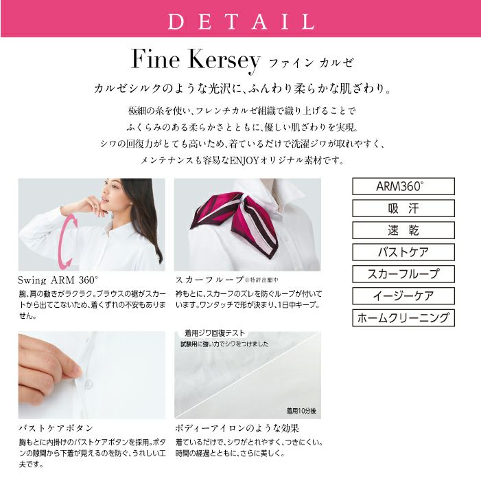 他の画像を見る カルゼシルクのような光沢に柔らかな肌ざわり。吸汗速乾性に優れシワの回復力も高い優秀シャツ! カーシーカシマ ブラウス(長袖) EWB-595【ENJOY】 事務服 レディース 【19号】 女性用 制服 ユニフォーム 本体価格 ¥ 7,700 税込 在庫切れ カートに入れる お気に入りに登録する