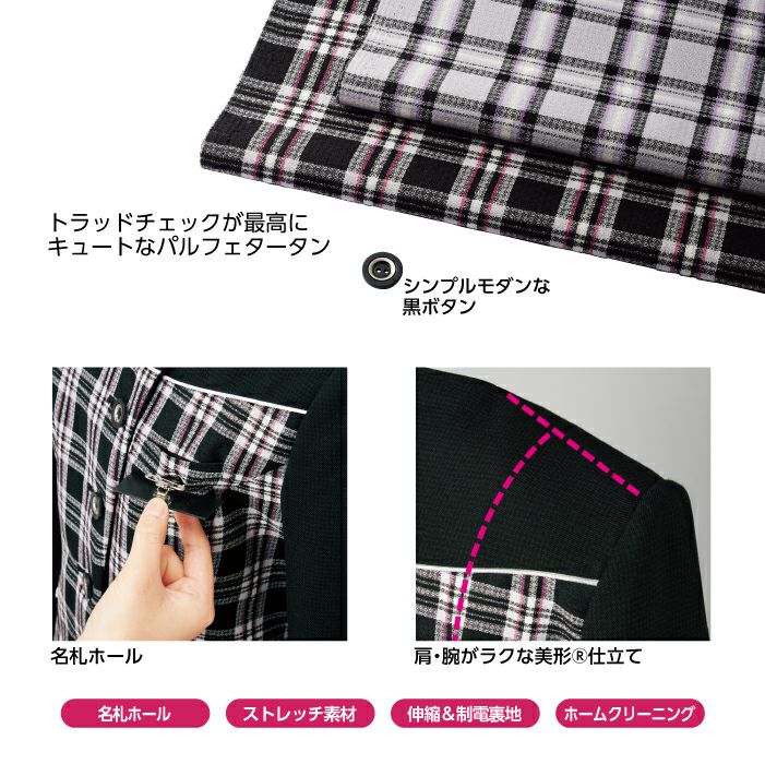 他の画像を見る 大人可愛いタータンで、お客様を品よくお迎え。タータンチェック柄で切り替えた大人キュートなワーキングスタイル。ストレッチ 制電裏地 ホームクリーニング 事務服 ジャケット SA352J オールシーズン レディース 女性用 制服【SELECT STAGE/神馬本店】 本体価格 ¥ 24,640 税込 在庫切れ カートに入れる お気に入りに登録する