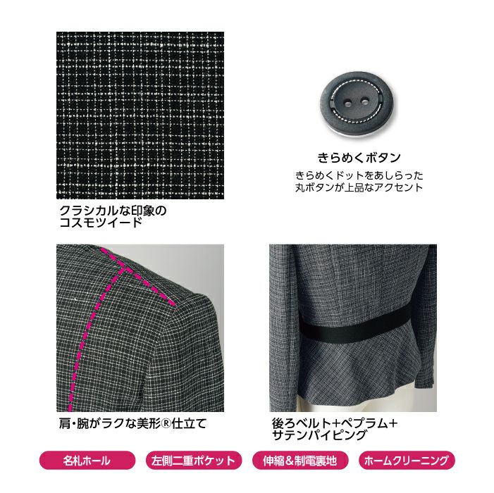 他の画像を見る クラシカルなエレガントが香り立つツイード風のコスモツイード。左胸ポケットには名札付け用のホール付き。制電裏地 ホームクリーニング 事務服 ジャケット SA362J オールシーズン レディース 女性用 制服【SELECT STAGE/神馬本店】 本体価格 ¥ 22,330 税込 在庫切れ カートに入れる お気に入りに登録する