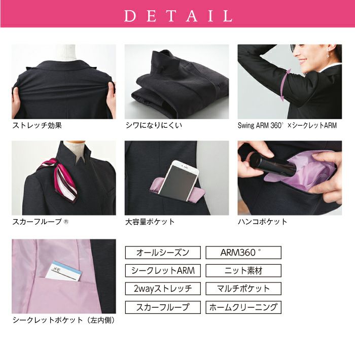 他の画像を見る ウールをブレンドしたしなやかなニット生地で薄く軽く伸縮性に富み、シワになりにくい!ストレッチ ホームクリーニング カーシーカシマ ジャケット EAJ-586【ENJOY】 事務服 レディース 女性用 制服 ユニフォーム 本体価格 ¥ 19,580 税込 在庫切れ カートに入れる お気に入りに登録する