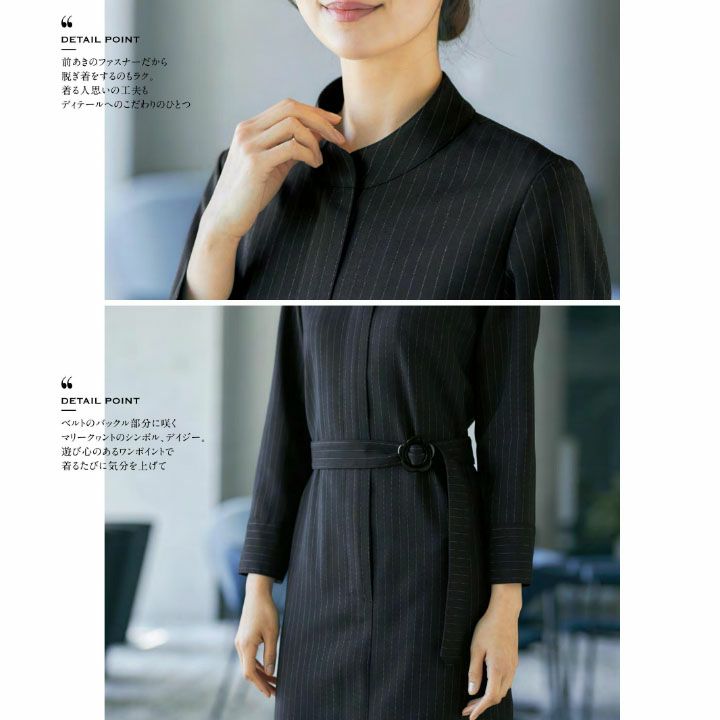 他の画像を見る 深い黒色のベースにシャープなグレーラインを施したピンストライプ生地のワンピース。前あきのファスナーだから脱ぎ着をするのもラク。 ワンピース 事務服 M53251 マリークワント レディース 女性用 クラシック ストレッチ裏地 企業 会社 制服 ユニフォーム オフィスウェア アルファピア チクマ 可愛い かっこいい おしゃれ MARYQUANT マリークヮント 会社 企業 制服 かわいい かっこいい おしゃれ 本体価格 ¥ 35,002 税込 カートに入れる お気に入りに登録する
