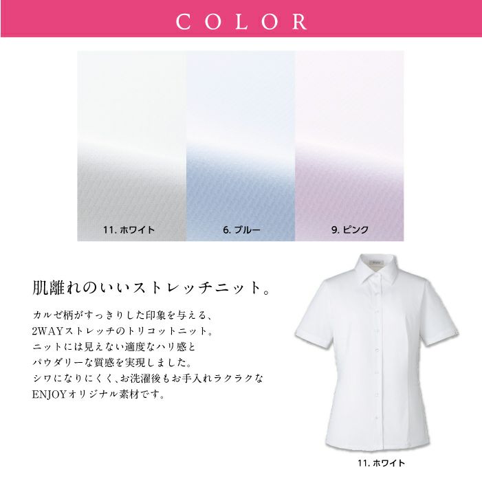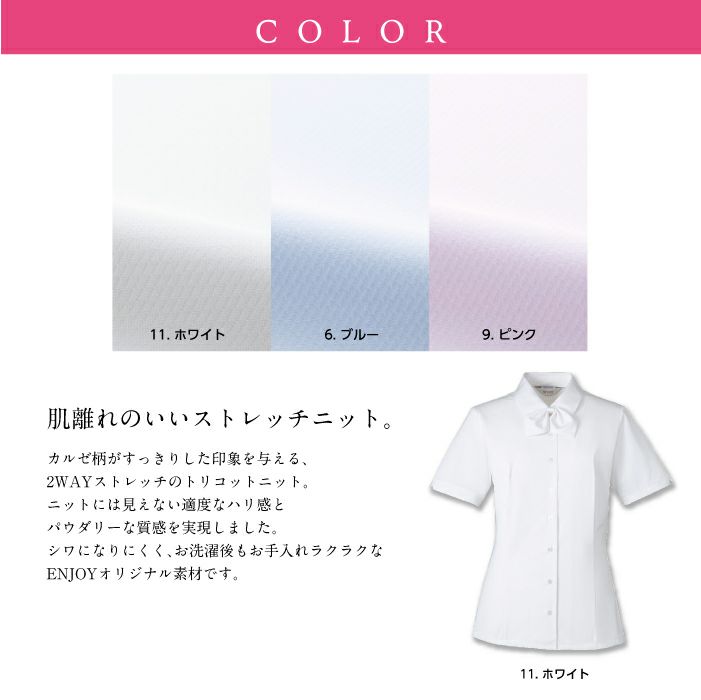 他の画像を見る 肌離れの良いストレッチニット。シワになりにくくお手入れも簡単!リボンは取り外れるので開衿ブラウスとしても。吸汗 速乾 防透 UVカット カーシーカシマ ブラウス(半袖)ESB-693【ENJOY】事務服 レディース 【19号】 女性用 制服 ユニフォーム 本体価格 ¥ 7,227 税込 カートに入れる お気に入りに登録する