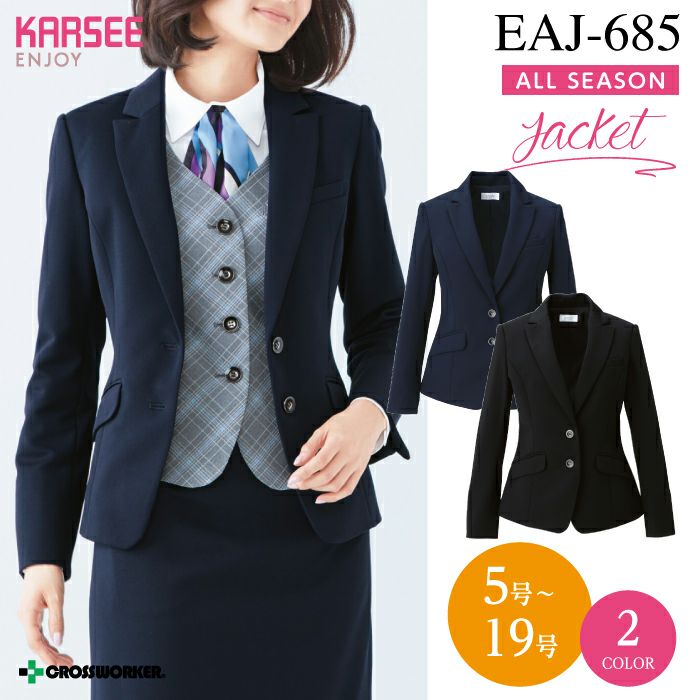 他の画像を見る ENJOY独自の技術を極めた新開発のオールフィットな3Dパターンで、あらゆる身長・体型・年齢に美しくフィットします カーシーカシマ ジャケット EAJ-711 事務服 オールシーズン レディース ホームクリーニング【KARSEE/ENJOY】 本体価格 ¥ 20,790 税込 カートに入れる お気に入りに登録する