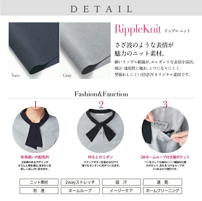 他の画像を見る 肌離れの良いストレッチニット。シワになりにくくお手入れも簡単!リボンは取り外れるので開衿ブラウスとしても。吸汗 速乾 防透 UVカット カーシーカシマ ブラウス(半袖)ESB-693【ENJOY】事務服 レディース 女性用 制服 ユニフォーム 本体価格 ¥ 4,818 税込 カートに入れる お気に入りに登録する