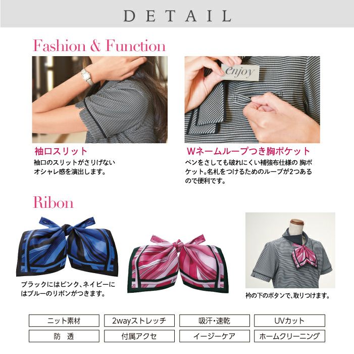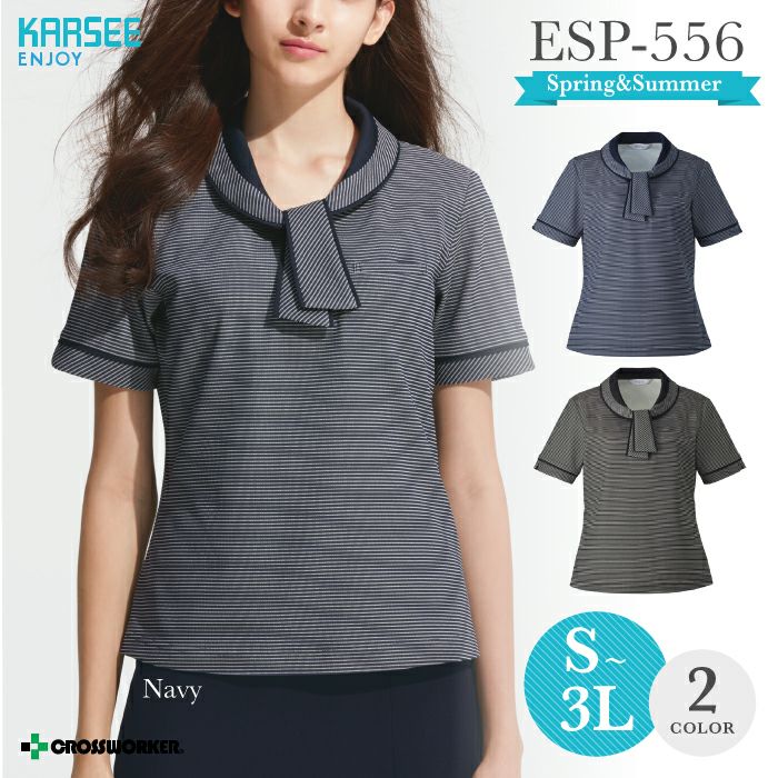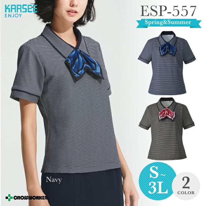 他の画像を見る 通気性の良いボーダー生地でシックなマリンテイストに。簡単装着リボン付き!速乾 UVカット 防透 カーシーカシマ 半袖ポロシャツ ESP-557【ENJOY】 事務服 レディース 女性用 制服 ユニフォーム 本体価格 ¥ 9,790 税込 カートに入れる お気に入りに登録する