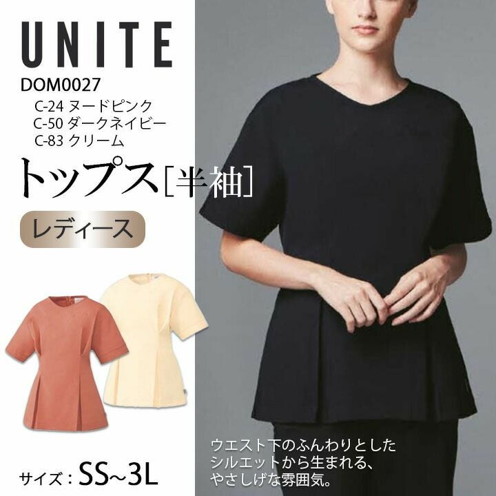トップス レディース DOM-0027 医療用 白衣 半袖 おしゃれ 看護 ナース 病院 介護 医者 美容 エステ 女性用 SEK 透け防止 制電 ストレッチ UVカット 制菌 DOM0027 チトセ ネイビー クリーム ピンク