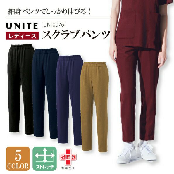 レディーススクラブパンツ ズボン 白衣 女性用 UN-0076 UN0076 チトセ ユナイト 医療用 看護 ナース 病院 介護 医者 ストレッチ 2段ウエストゴム 動きやすい スタイリッシュ 清潔 抗菌 細身ズボン 卒業記念 スクラブ 研修医 チームスクラブ メール便送料無料