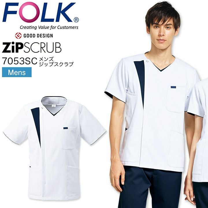 【メール便送料無料※代引不可】ジップスクラブ フォーク 7053SC メンズ ストレッチ 男性用 医療 看護師 介護士 ナース 医師 医者 病院 制服 FOLK【S-4L】