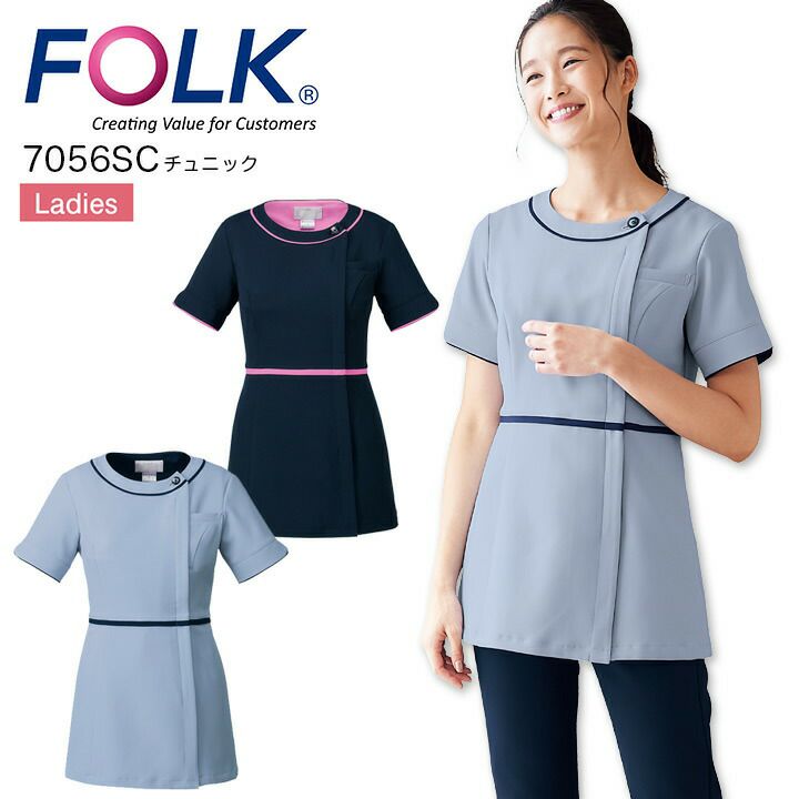 チュニック フォーク 7056SC レディース 女性用 吸汗 医療 看護師 ナース 医師 医者 病院 制服 FOLK【S-4L】