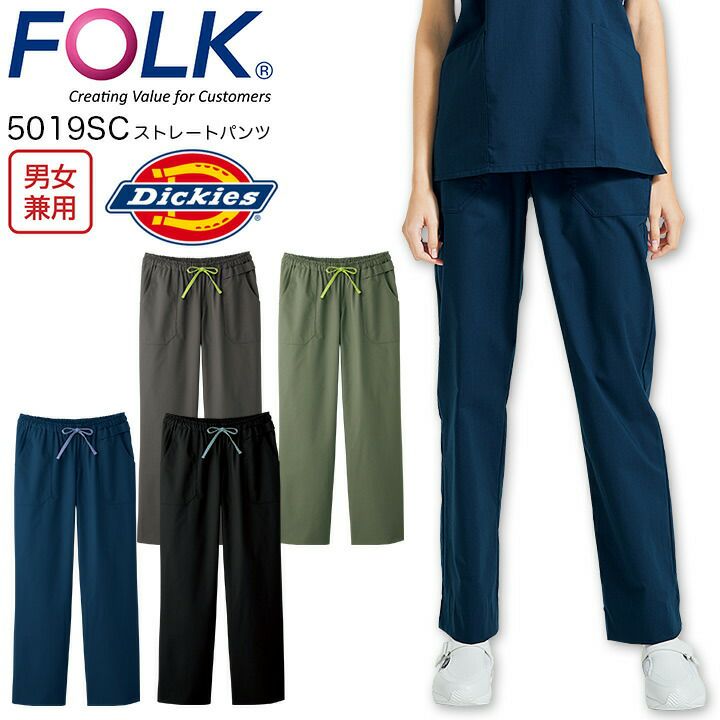 ディッキーズ ストレートパンツ 5019SC 男女兼用 看護師 介護士 ナース 白衣 メンズ レディース 制電 ズボン 医療 医師 医者 病院 クリニック 歯科 制服 フォーク FOLK Dickies【SS-4L】【メール便送料無料※代引不可】