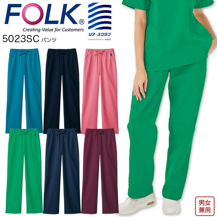 【メール便送料無料※代引不可】フォーク パンツ 5023SC 男女兼用 メンズ レディース ユニセックス ズボン 総ゴム 透け防止 吸汗速乾 医療 看護師 ナース 医師 医者 病院 制服 FOLK【SS-4L】