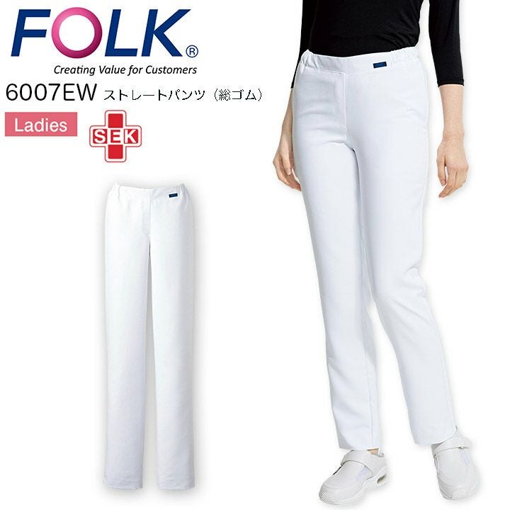【メール便送料無料※代引不可】ストレートパンツ(総ゴム)レディース フォーク 6007EW 女性用 ズボン 吸汗 制菌 医療 看護師 ナース 医師 医者 病院 制服 FOLK【S-4L】