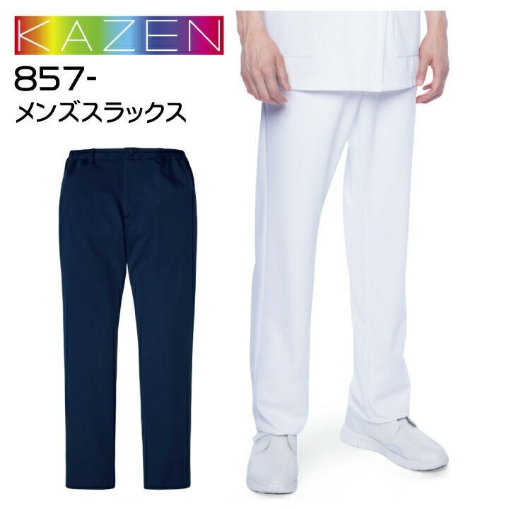 スクラブパンツ メンズ スラックス 857 カゼン KAZEN パンツ メンズ ウエストゴム ストレッチ 医療 白衣 看護 医者 病院 クリニック 診察衣 実験衣 薬剤師 調剤薬局 歯科