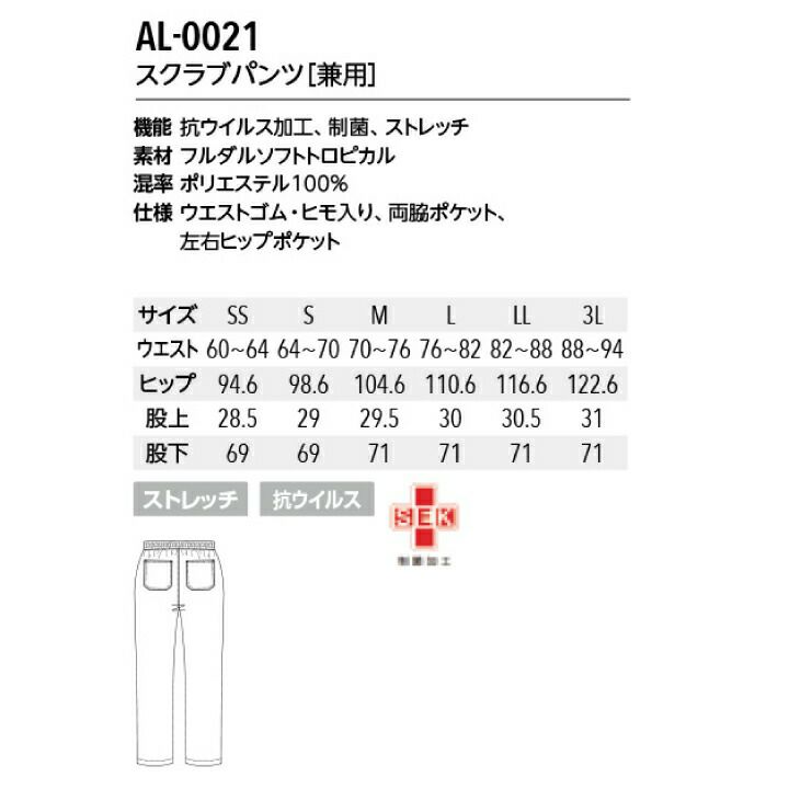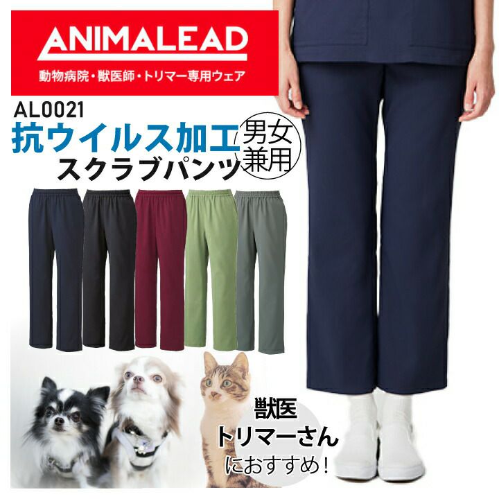 他の画像を見る 抗ウイルス・制菌性を備えた、動物関連のお仕事に従事する人のためのスクラブパンツ。ネイビー ブラック ワイン オリーブ グリーン グレー 紺 黒 赤 緑 灰 獣医師向けスクラブパンツ AL0021 AL-0021 男女兼用 メンズ レディース 抗ウイルス 制菌性 アニマリード 獣医師 トリマー 動物病院 ペットショップ 看護師 医療白衣 制服 チトセ ANIMALEAD【メール便送料無料】 本体価格 ¥ 5,731 税込 カートに入れる お気に入りに登録する