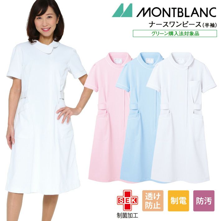 ナースワンピース 半袖 レディース 住商モンブラン 女性用 透け防止 制電 制菌加工 防汚 吸汗 医療用白衣 看護士 看護師 ナース 病院 73-1472,73-1474,73-1476