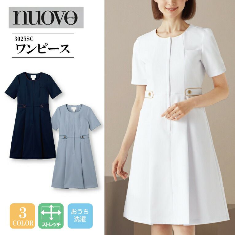 事務服ワンピース 3025SC FORK nuovo フォーク ヌーヴォ 女性用 ストレッチ 速乾 吸汗 イージーケア ノーアイロン おうち洗濯 クリニック医療スタッフ 受付 美容外科 歯科 皮膚科 医療事務 企業 エステサロン 上品 キレイ 好印象 おもてなし 制服 ユニフォーム