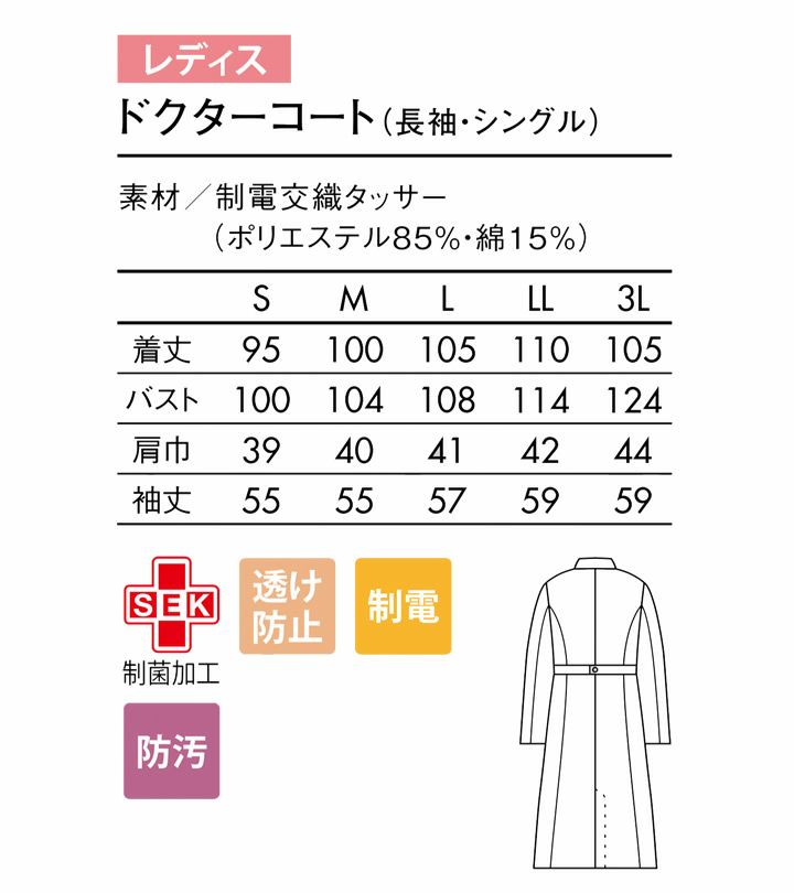 他の画像を見る 制電仕様でまとわりつきを軽減。着脱もスムーズ。ソフトな肌ざわりと軽やかな着心地も魅力。 ドクターコート 長袖 シングル 住商モンブラン レディース 女性用 透け防止 制電 制菌加工 防汚 医療用白衣 医師 医者 病院 71-121,71-123,71-125 本体価格 ¥ 5,390 税込 カートに入れる お気に入りに登録する