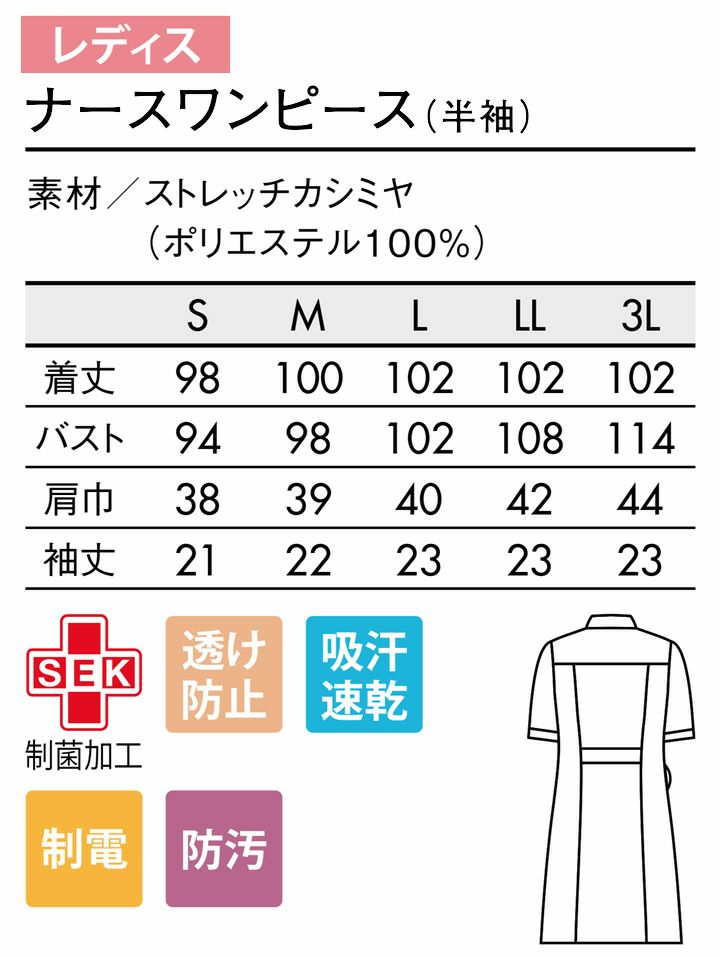 他の画像を見る 透け防止、吸汗速乾。右脇ポケット内にはキーホルダーが掛けられるループ付き。 ナースワンピース 半袖 レディース 住商モンブラン 女性用 透け防止 制電 制菌加工 防汚 吸汗 速乾 医療用白衣 看護士 看護師 ナース 病院 73-1732 本体価格 ¥ 8,448 税込 在庫切れ カートに入れる お気に入りに登録する