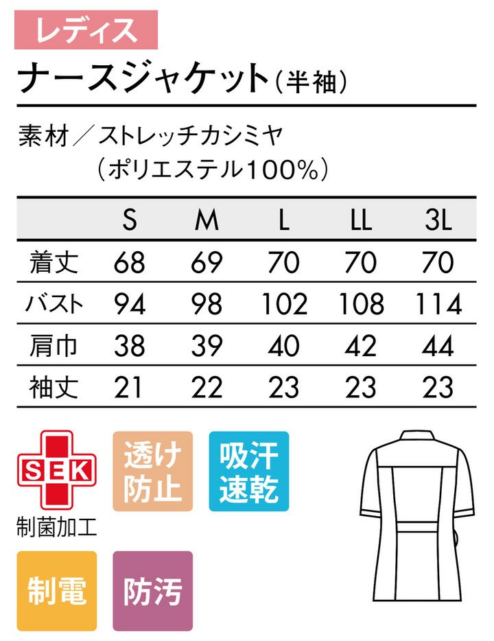 他の画像を見る 軽くしなやかで、伸縮性があり快適。光沢のある繊細な生地の表情が上品な印象を演出。 ナースジャケット 半袖 レディース 住商モンブラン ストレッチカシミヤ 女性用 透け防止 制電 制菌加工 防汚 吸汗速乾 医療用白衣 看護士 看護師 病院 73-1968,73-1940,73-1942,73-1944,73-1946,73-1948 本体価格 ¥ 4,840 税込 カートに入れる お気に入りに登録する
