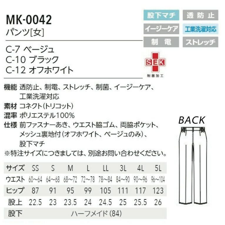 他の画像を見る すっきりシルエットでスタイルアップ! 黒 ブラック 白 ホワイト ベージュ サロンパンツ ズボン 女性用 レディース MK0025 MK-0025 エステサロン エステ クリニック 美容 受付 スタッフ 制服 ユニフォーム おしゃれ 上品 フォーマル 制電 ストレッチ SEK制菌 透け防止 工業洗濯可能 透防止 白衣 ミッシェルクラン ユナイト チトセ 本体価格 ¥ 7,128 税込 カートに入れる お気に入りに登録する