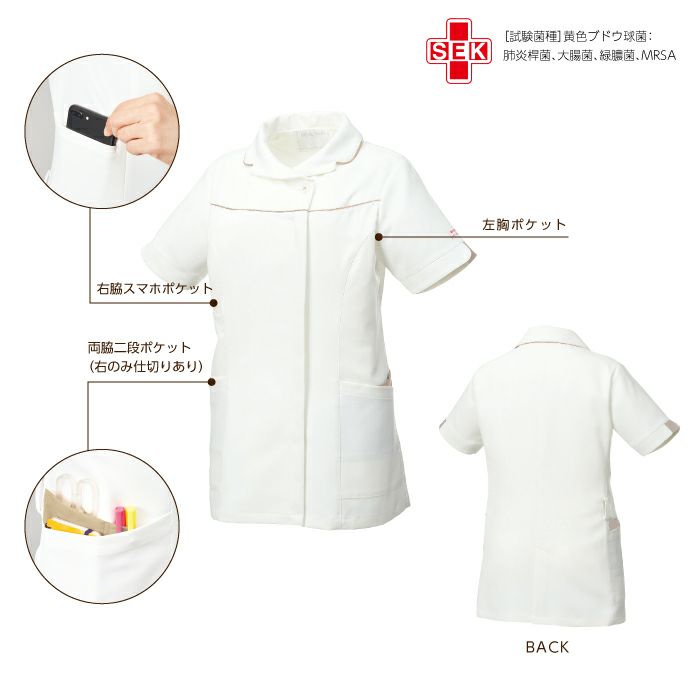 他の画像を見る 【MICHEL KLEIN】落ち着いた雰囲気とフェミニンなニュアンスを併せ持ったレディースジャケット。 半袖ジャケット レディース MICHEL KLEIN ミッシェルクラン MK-0041 MK0041 UNITE CHITOSE チトセ 医療用 白衣 半袖 おしゃれ 看護 ナース 病院 介護 医者 美容 エステ 女性用 SEK 透け防止 制電 ストレッチ 取り扱い簡単 制菌 工業洗濯可 オリジナルネーム付 本体価格 ¥ 7,557 税込 カートに入れる お気に入りに登録する
