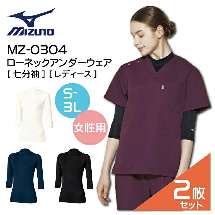 【2枚セット】ミズノ 女性用 インナーウェア 7分袖 ローネック MZ-0304
