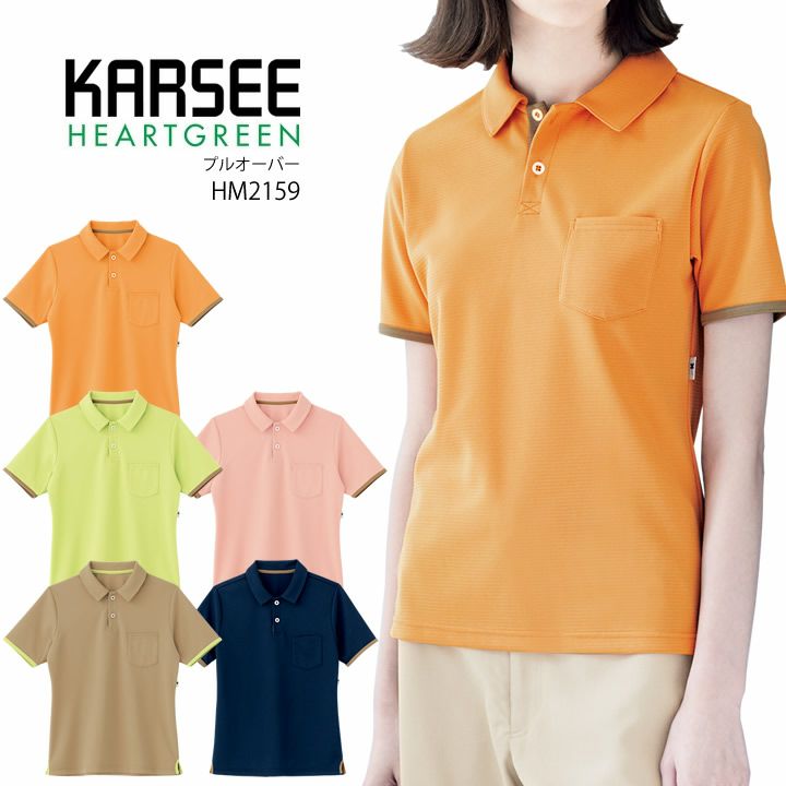 カーシー 半袖プルオーバー HM2159 男女兼用 レディース メンズ 吸汗速乾 ストレッチ 抗菌制菌 消臭 防汚 制電 UVカット HEARTGREEN(ハートグリーン) 介護 医療 メディカル ユニフォーム