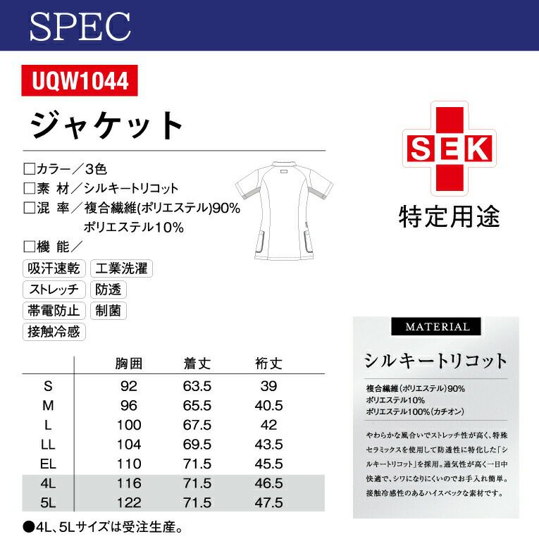 他の画像を見る 【le coq sportif】上品で爽やかな印象のあるジャケット。薄さと透けにくさが両立したシルキートリコット素材使用。 医療用ジャケット ケーシー 半袖 女性用 レディース UQW1056 le coq sportif ルコックスポルティフ スクラブ 病院 医師 看護 薬局 薬剤師 スタッフ 制服 工業洗濯対応 ストレッチ 吸汗速乾 防透 帯電防止 SEK 接触冷感 通気性 お手入れ簡単 ゆったり かわいい おしゃれ 上品 本体価格 ¥ 7,667 税込 在庫切れ カートに入れる お気に入りに登録する