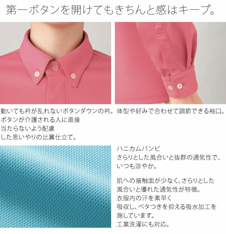 他の画像を見る 第一ボタンを開けてもきちんと感はキープ。 カーシー 長袖プルオーバー HM2188 男女兼用 レディース メンズ 吸汗速乾 ストレッチ 抗菌 制菌 SEK 工業洗濯対応 HEARTGREEN(ハートグリーン) 介護 医療 メディカル ユニフォーム 本体価格 ¥ 6,490 税込 カートに入れる お気に入りに登録する