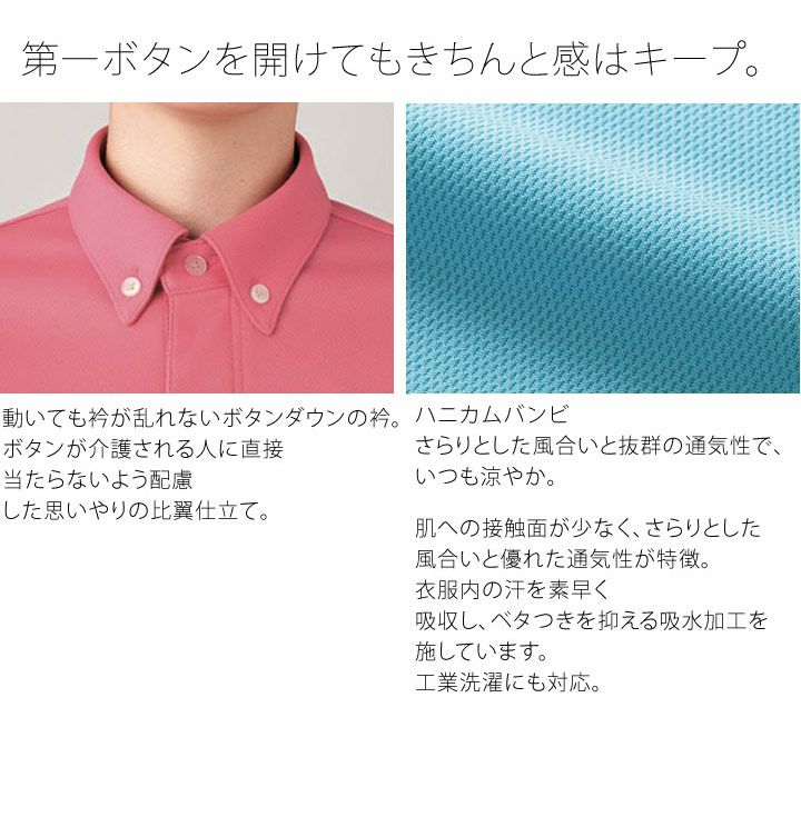 他の画像を見る のびのびと動きやすいニット素材 ユナイト ボタンダウン半袖ポロシャツ 男女兼用 メンズ レディース UN0030 UN-0030 ストレッチ 制電 消臭 UVカット 病院 介護 チトセ 本体価格 ¥ 2,200 税込 カートに入れる お気に入りに登録する